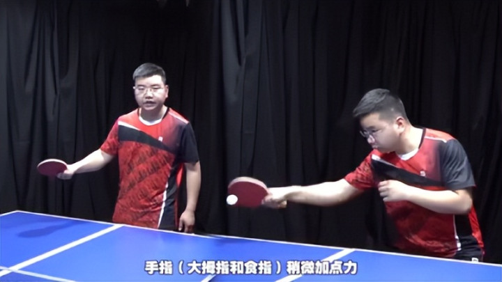 这一过程能瞬间改变板型,使发力有效传递到拍头上。具体发力时,引拍时握虚虚贴,击球时加力,整个手腕加力并捏紧,同时拇指向下压,食指稍微顶一下。