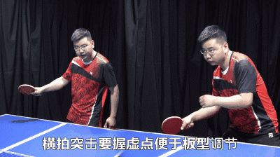 横拍在突击时,握拍不可太死。若握得太紧,板型调节就会不灵活。正确的做法是稍微握虚一点,手指虚贴在球拍上,无需完全贴合。如此一来,在发力时,能实现由松到紧的瞬间调节。在发力瞬间,将球拍突然握紧,大拇指和食指稍微用力,后面三个手指也稍加用力,从而产生力量。